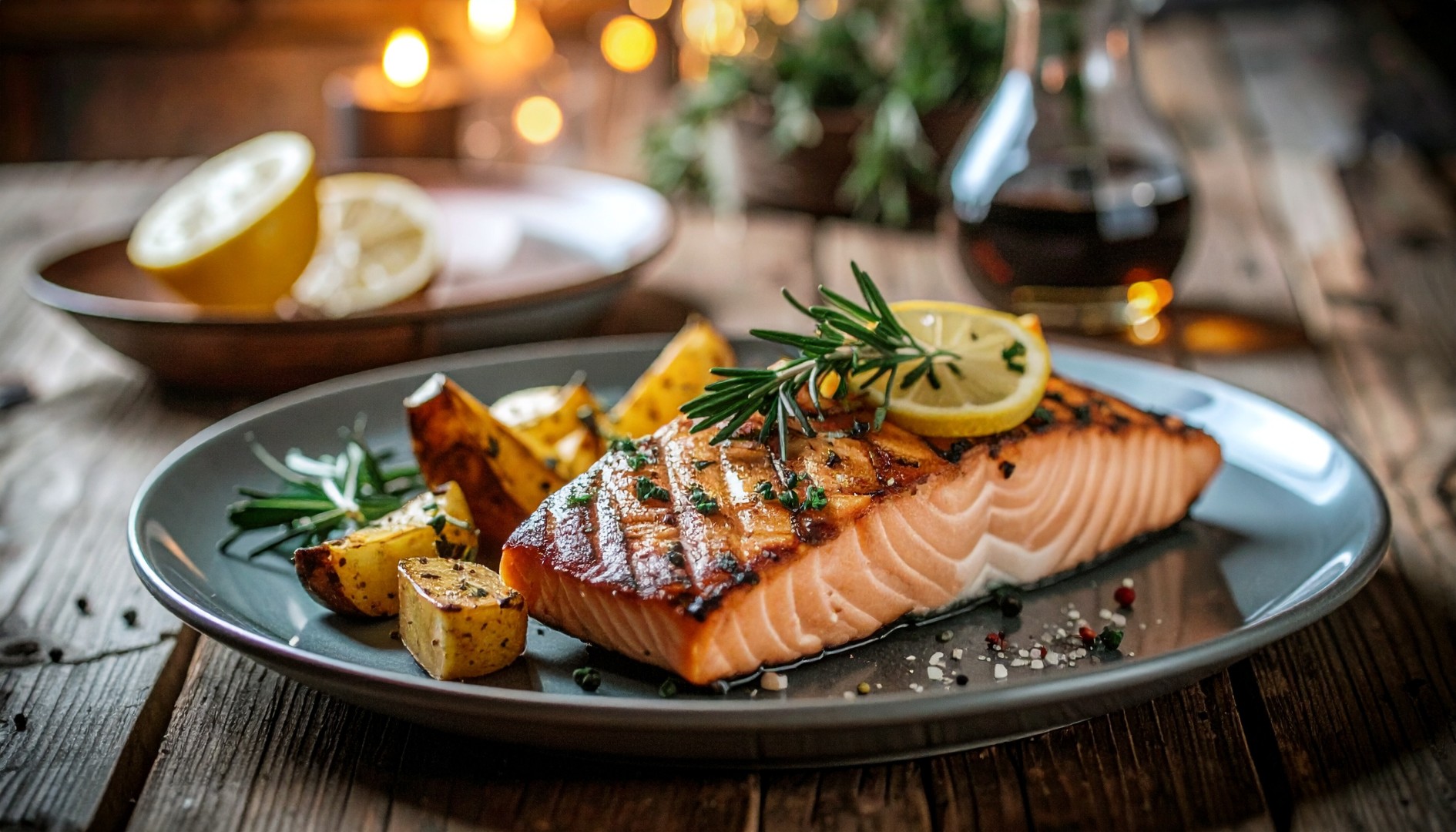 gegrilltes Lachsfilet mit Rosmarinkartoffeln
