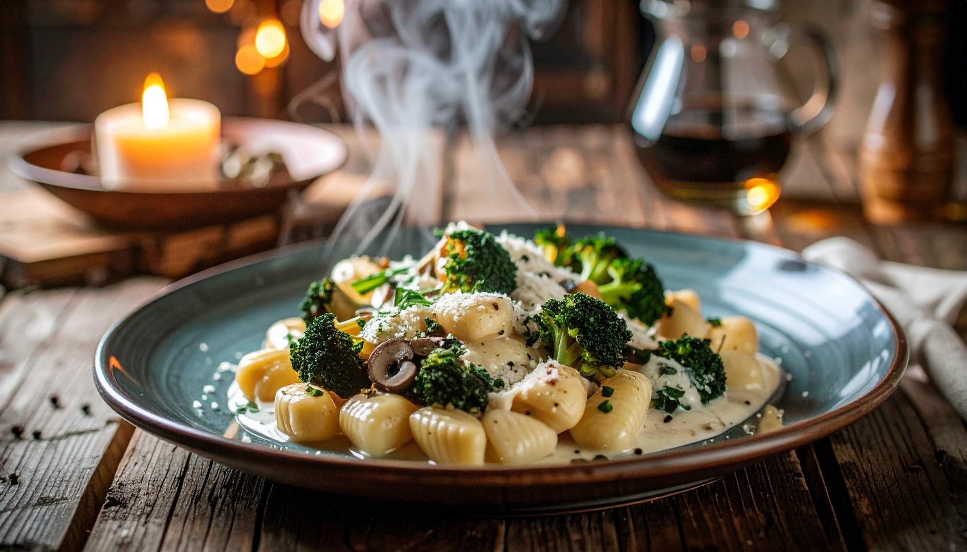 Gorgonzola, Brokkoli, Champignons, Sahne