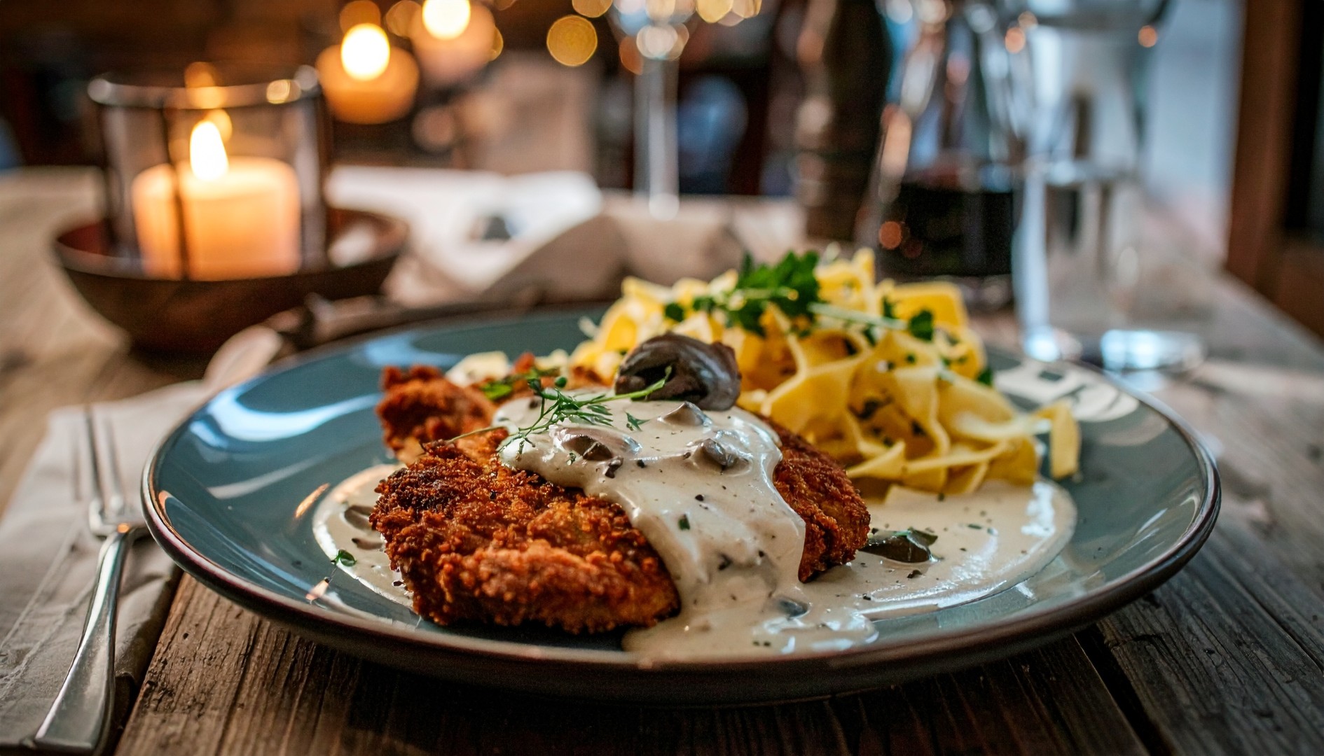 Schweinelachs mit Pilzrahmsoße und Spätzle